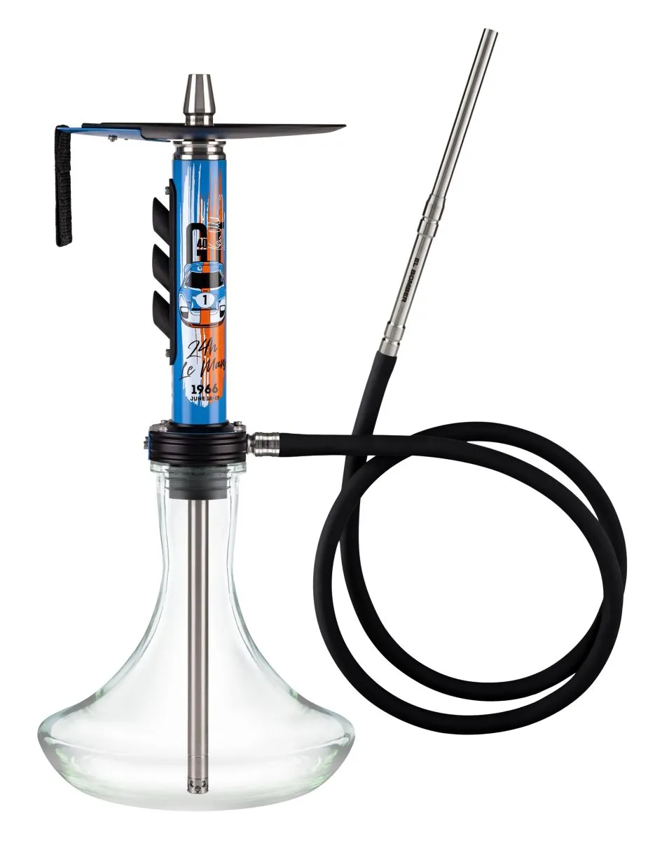 דגם הנרגילה Racing. עיצוב הדגם נעשה בהשראת סיפורו של הנהג קן מיילס – הנהג האגדי, שהונצח בהיכל התהילה של מוטורספורט בזכות ביצועיו במסלול המרוצים ״לה-מאן״ עם הרכב FORD GT40 בשנת 1966. El Bomber “24 Hours” יעורר בכם רגשות חדשים ועזים * הצלחת מגיעה עם מחזיק מיוחד לידית הנרגילה לנוחות מירבית * ⁠הגוף בעל עיצוב יחודי עם צבעים בוהקים המספר את ההיסטוריה מאחורי הדגם * ⁠פתח פריקת העשן הוא מ-״האגזוז״ חלקו הפנימי של הגוף, הצלחת, המשתיק, החיבור המגנטי של הצינור והחיבור של הראש כולם עשויים מפלדת אל-חלד איכותית שמונעת מהנרגילה לספוג ריחות וטעמים ומאריכה את אורך החיים שלה. בסיס הגוף עשוי מפולימר. חלקו הפנימי של הצינור עשוי גם כן מפלדת אל-חלד והחלקים הדקורטיביים עשויים מאלומיניום